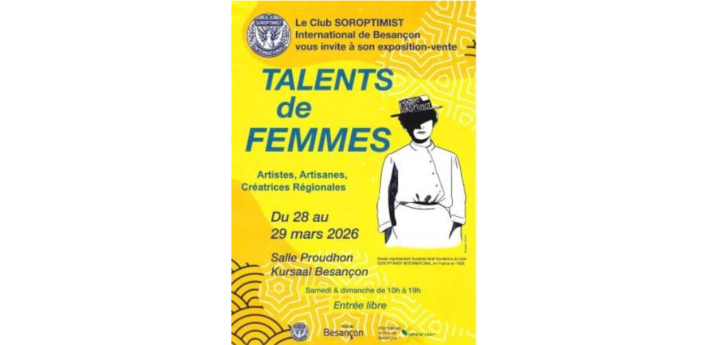 Le Club Soroptimist International de Besançon vous invite à son exposition-vente annuelle « Talents de femmes » les 28 et 29 mars.